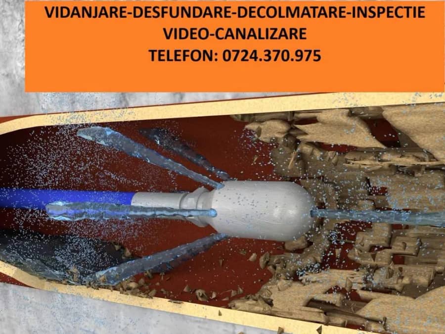 - desfundarea,decolmatarea,spalarea conductelor de canalizare,pluviale,industriale,de bucatarie,de baie,de chiuvete si pardoseala cu furtun de presiune mecanizat.