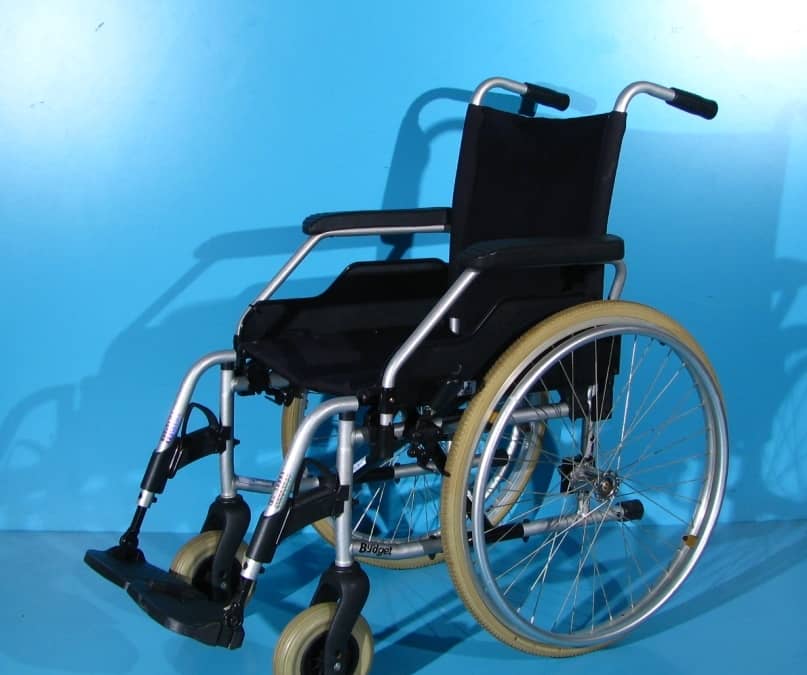 Scaun handicap dotat cu frane pentru pacient.